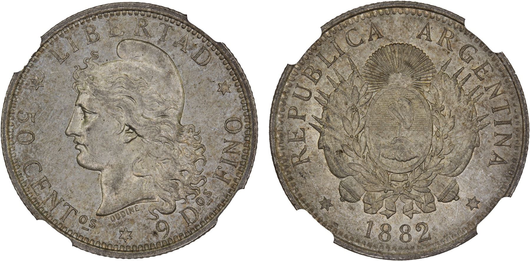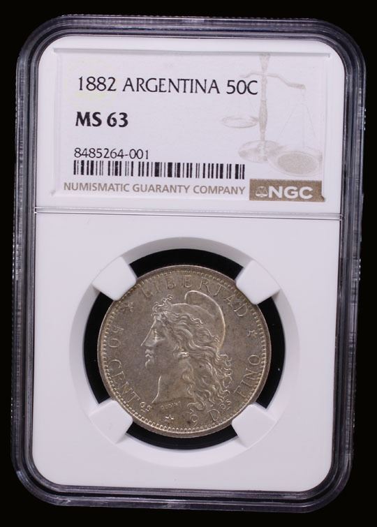 ARGENTINA: Republic, AR 50 centavos, 1882, KM-33, lightly toned, NGC graded MS63.