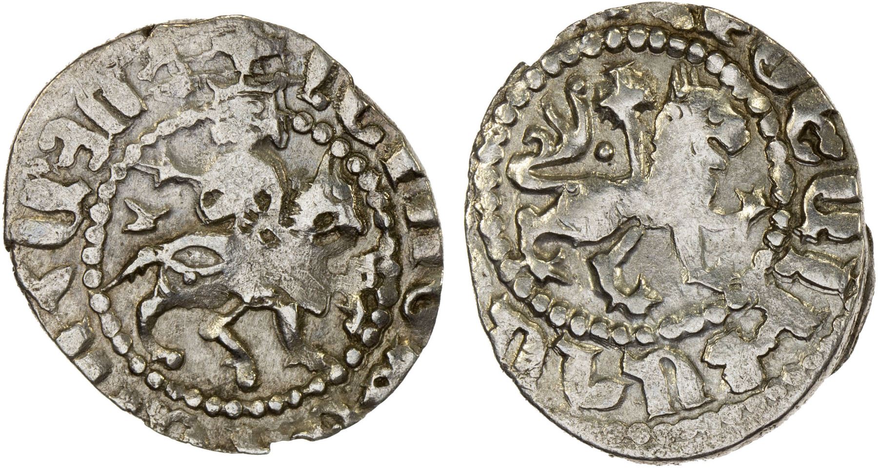 ARMENIA: Levon IV, 1320-1342, AR takvorin, Sis, Bed-102/103, king on horseback // lion, irregular flan, virtually full inscriptions legible, choice VF.