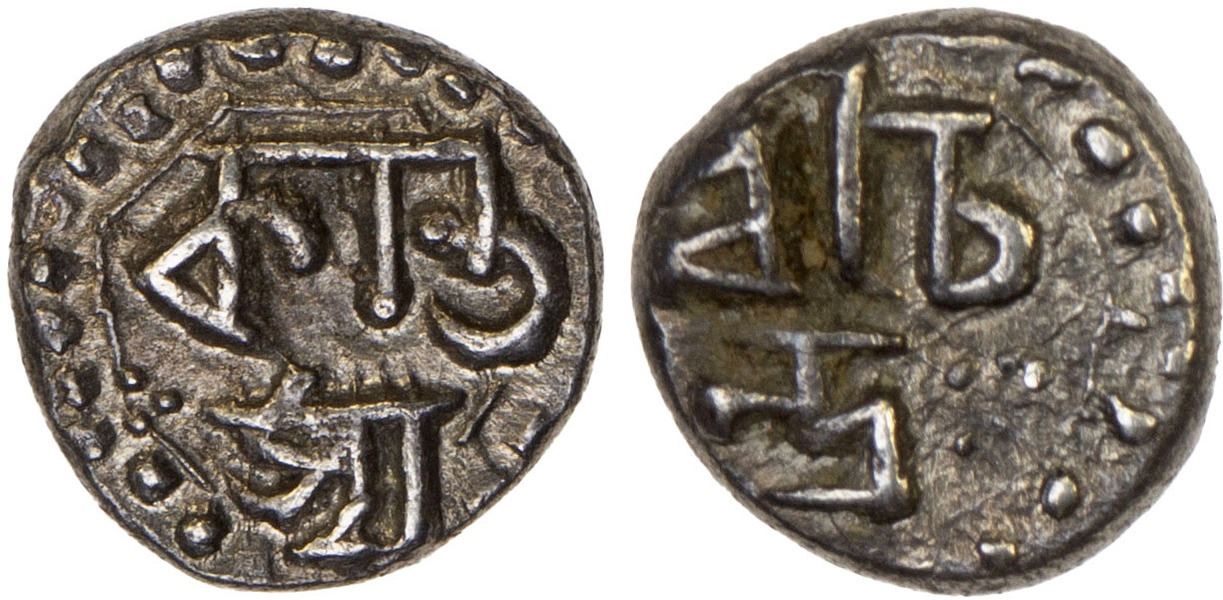 ASSAM: Chandrakanta Simha, 2nd reign, 1819-1821, AR 1/32 rupee (half anna) (0.40g), ND, KM-245, XF, RR.