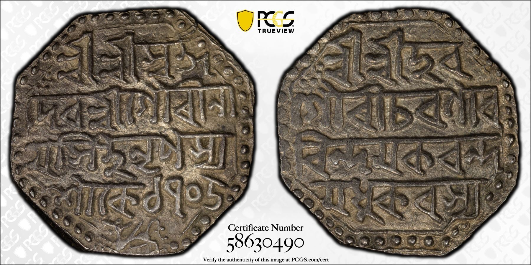 ASSAM: Gaurinatha Simha, 1780-1796, AR rupee (11.38g), SE1705 (1783), KM-215, PCGS graded AU53.