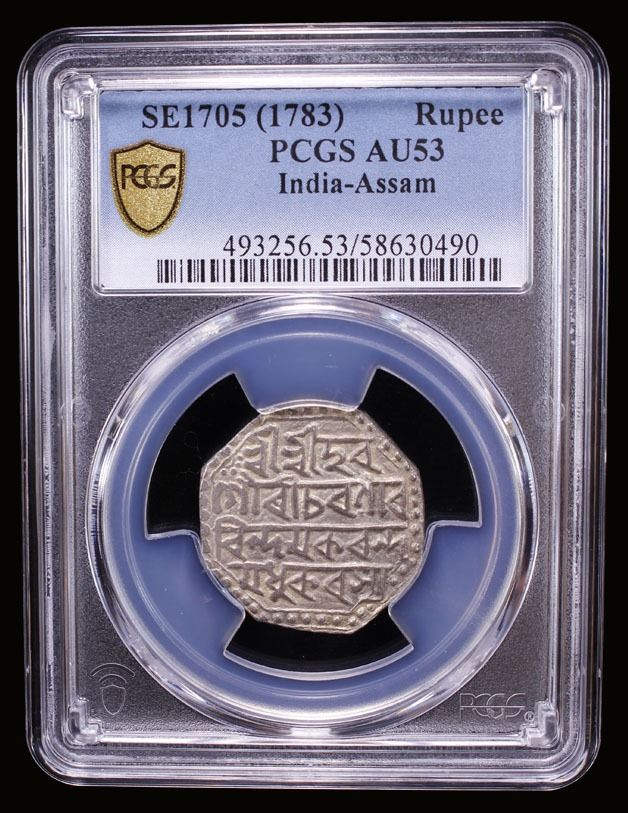 ASSAM: Gaurinatha Simha, 1780-1796, AR rupee (11.38g), SE1705 (1783), PCGS AU53