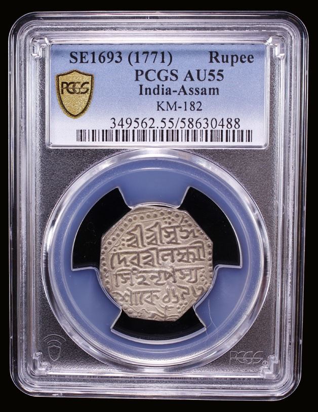 ASSAM: Lakshmi Simha, 1769-1780, AR rupee (11.41g), SE1693 (1771), KM-182, R&B-Q29.1, PCGS graded AU55.