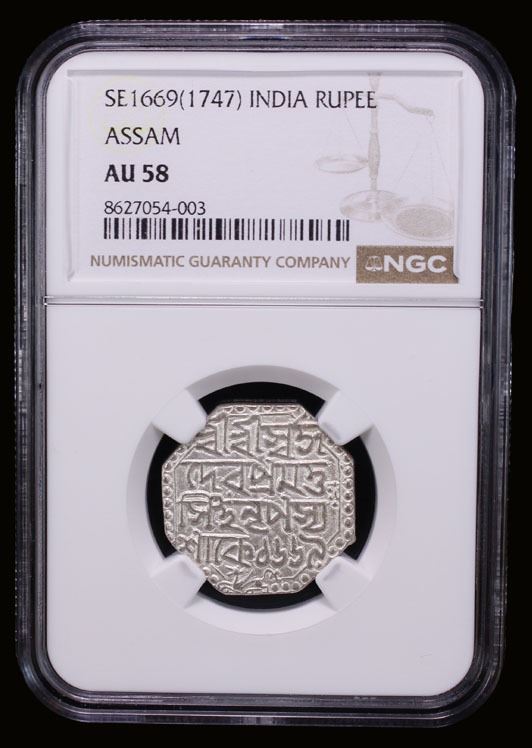 ASSAM: Pramatta Simha, 1744-1751, AR rupee, SE1669 (1747), KM-122, bold strike, NGC graded AU58.