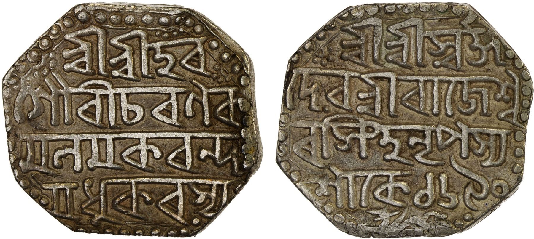 ASSAM: Rajesvara Simha, 1751-1769, AR rupee (11.20g), SE1690, KM-134, RB-O53.1, Botham-40, octagonal, lion left at bottom of reverse, XF.