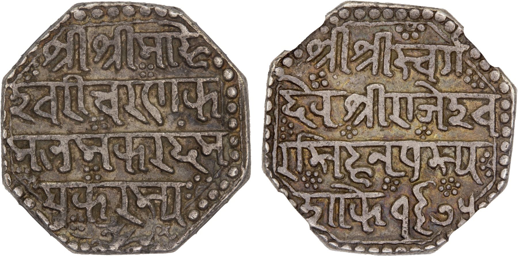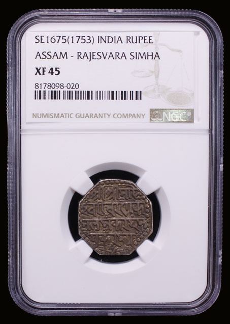 ASSAM: Rajesvara Simha, 1751-1769, AR rupee, SE1675, KM-145, rare one-year type with the legends in the Nagari script, NGC graded EF45.