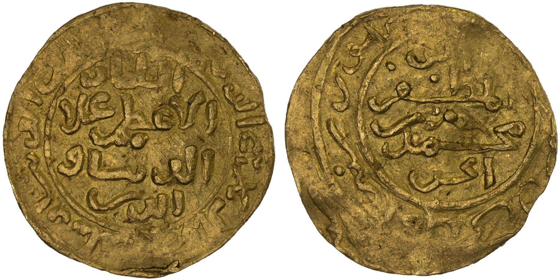 ASSASSINS AT ALAMUT (BATINID): Muhammad III, 1221-1254, AV fractional dinar (1.54g), Kursi al-Daylam, AH(6)51, A-1920, legends al-sultan al-a'zam 'alâ al-dunya wa'l-din // abu'l-muzaffar muhammad bin al-hasan, with the date in words in the reverse margin, the mint in the obverse margin; small scratch on reverse, some weakness, but the central legends and both the mint & date are fully legible, VF. There is only one example of this subtype filed on CoinArchives, but without the mint name, sold in our Auction 44, lot 636. The Batinid center was at a place called Alamut, known as Kursi al-Daylam on the coins ("throne of Daylam"), high in the Alborz mountains north of Qazwin.