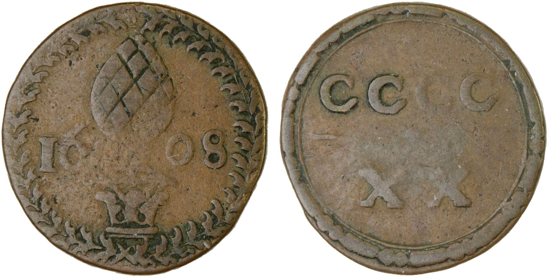 AUGSBURG: Free City, AE 1/420 gulden, 1608, as Forst.-92, as Schön-1, two-year type, apparently struck from 1608-21, Fine, ex Almer H. Orr III Collection.
