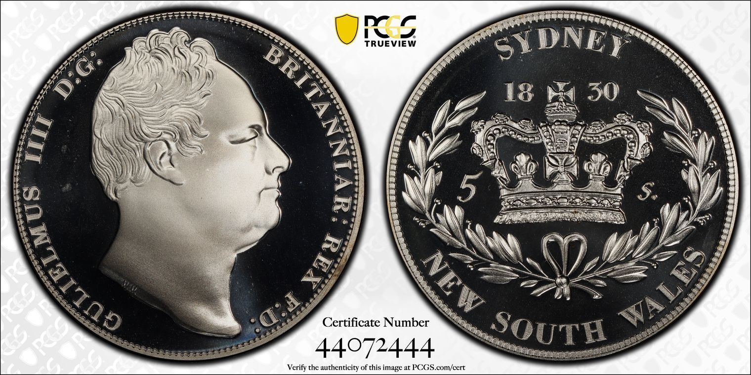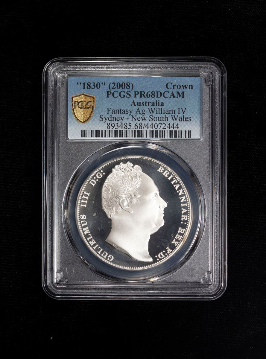 AUSTRALIA: Fantasy Crowns, 2008, AR crown, "1830", KM-, William IV // New South Wales Fantasy INA "retro series" struck in 2008, PCGS graded Proof 68 DCAM.