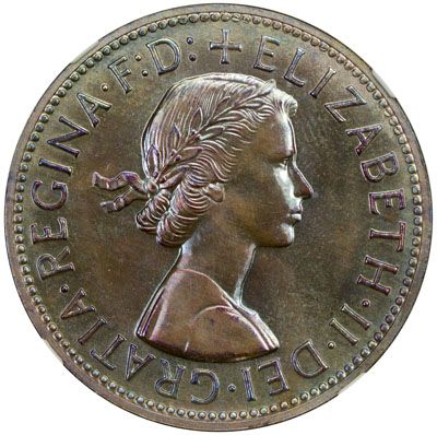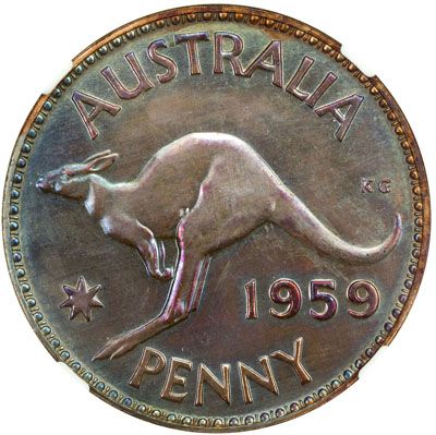 AUSTRALIA: Elizabeth II, 1952-, AE penny, 1959, KM-56, NGC graded PF65 BR.