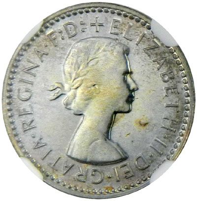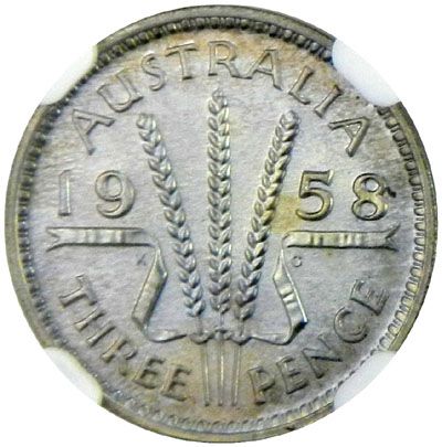 AUSTRALIA: Elizabeth II, 1952-present, AR 3 pence, 1958, KM-57, NGC graded Proof 66.