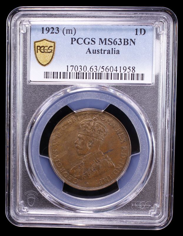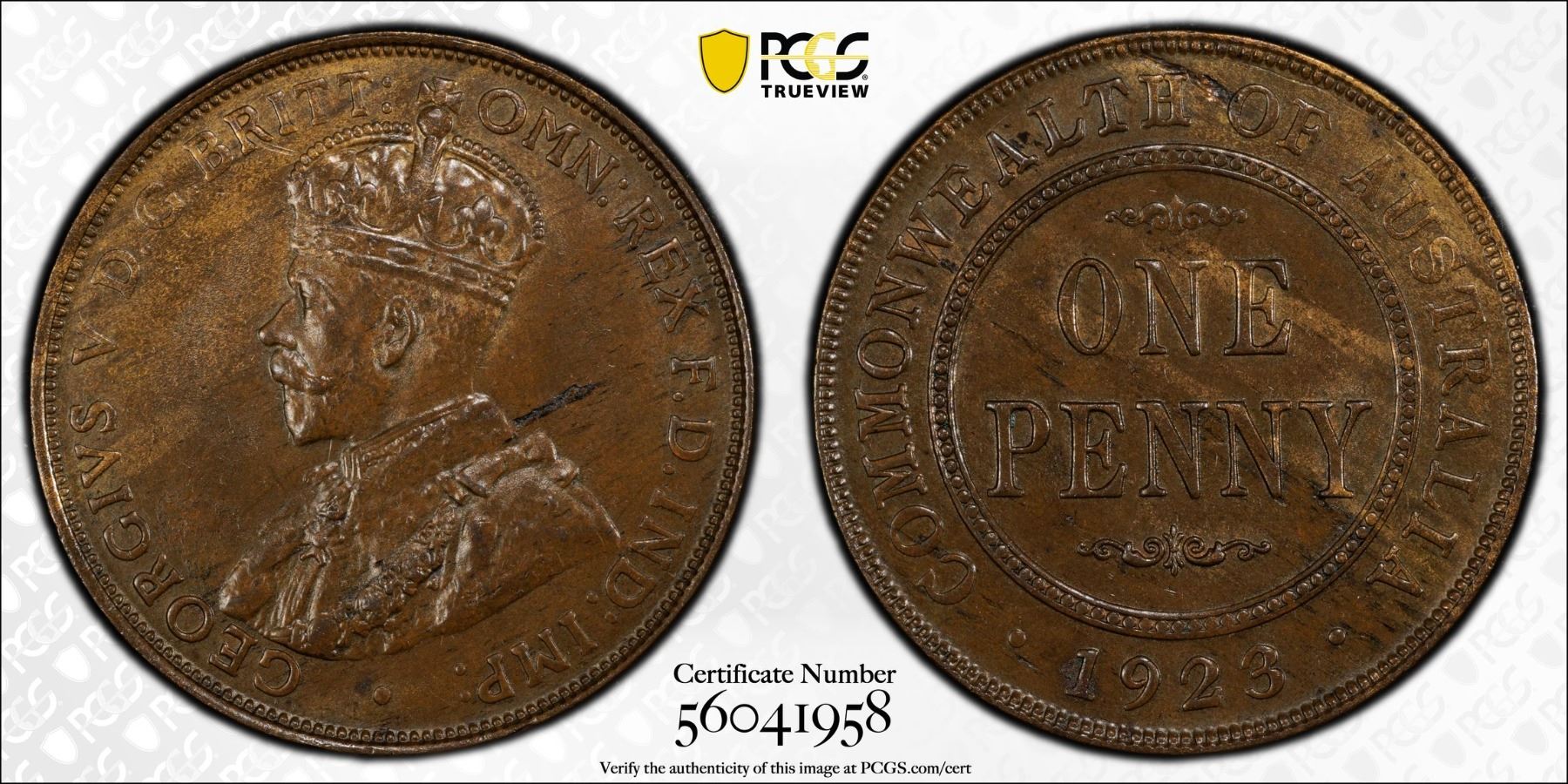 AUSTRALIA: George V, 1910-1936, AE penny, 1923, PCGS MS63 BN