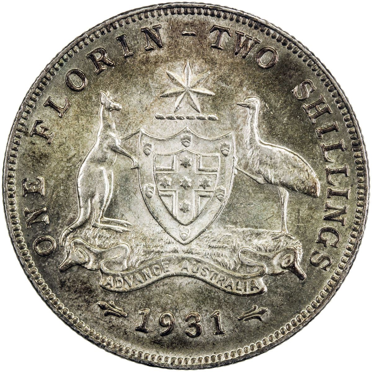 AUSTRALIA: George V, 1910-1936, AR florin, 1931(m), KM-27, lustrous AU.