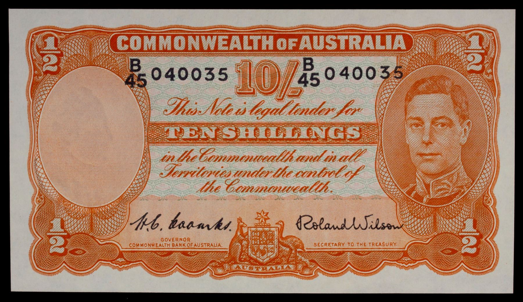 AUSTRALIA: George VI, 1936-1952, 10 shillings, ND (1952), AU