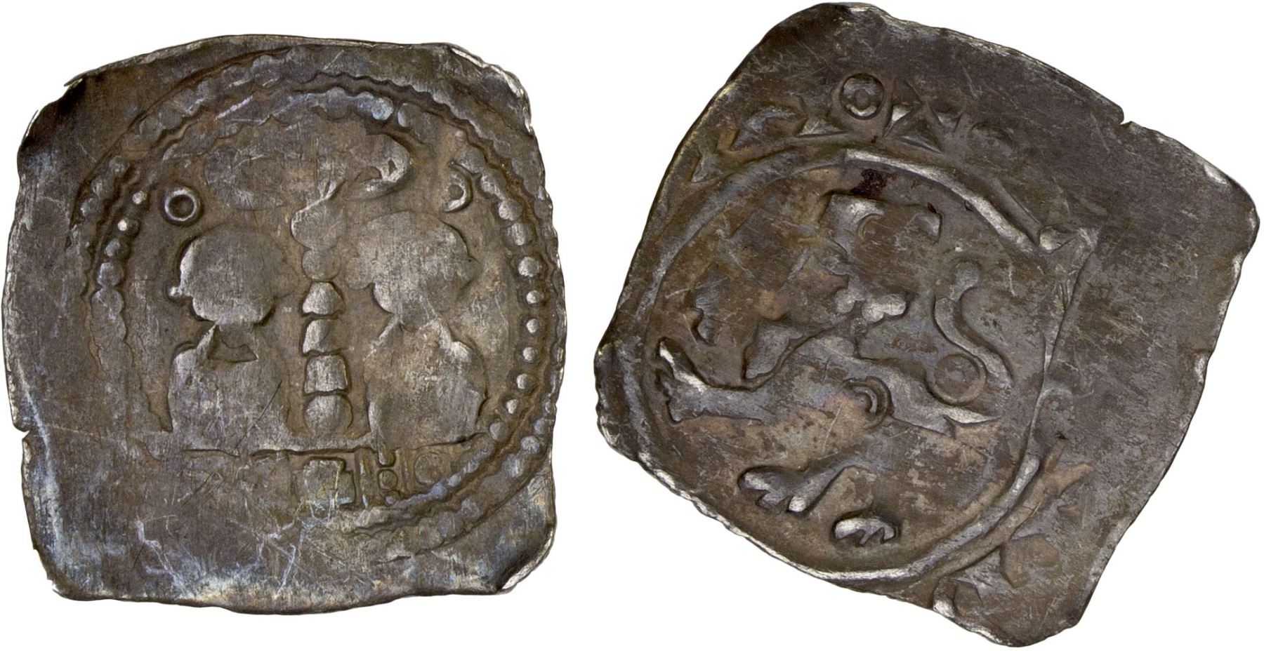 AUSTRIA: CARINTHIA: Bernhard II, 1202-1256, AR pfennig (0.89g), Landstrass, CNA-Cn4, two busts above a wall separated by a palm tree // lion left holding a cross, VF. The Duchy of Carinthia was located in southern Austria and parts of northern Slovenia. It was separated from the Duchy of Bavaria in 976. Carinthia remained a state of the Holy Roman Empire until its dissolution in 1806, though from 1335 it was ruled within the Austrian dominions of the Habsburg dynasty. Bernhard von Spanheim was Duke of Carinthia for 54 years from 1202 until his death in 1256. A patron of chivalry and minnesang (lyric and song writing), Bernhard's reign marked the emergence of the Carinthian duchy as an effective territorial state. This type was minted at the minted at the Kostanjevica Monastery founded by Bernhard von Spanheim at Landstrass.