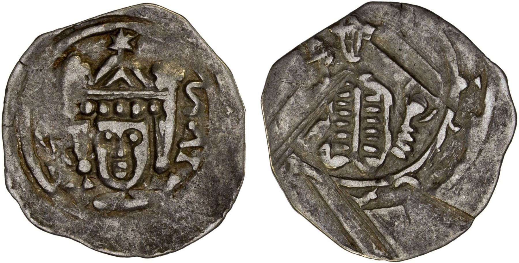 AUSTRIA: CARINTHIA: Bernhard II, 1202-1256, AR pfennig (0.91g), St. Veit, CNA-Cb112, facing half-length armored bust of duke, holding scepter and raising hand // crowned bust of Saint Veit (Saint Vitus), VF. St. Veit an der Glan is a town in the Austrian state of Carinthia (Kärnten), the administrative center of the St. Veit an der Glan District. It was the historic Carinthian capital until 1518.