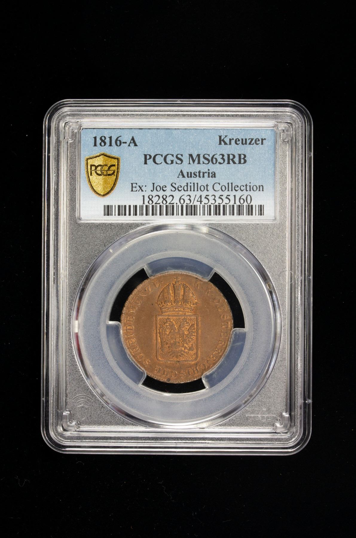 AUSTRIA: Franz I, 1804-1835, AE kreuzer, Kremnitz, 1816-A, KM-2113, a lovely lustrous mint state example! PCGS graded MS63 RB, ex Joe Sedillot Collection.