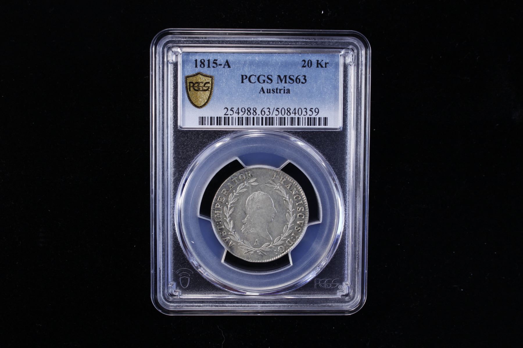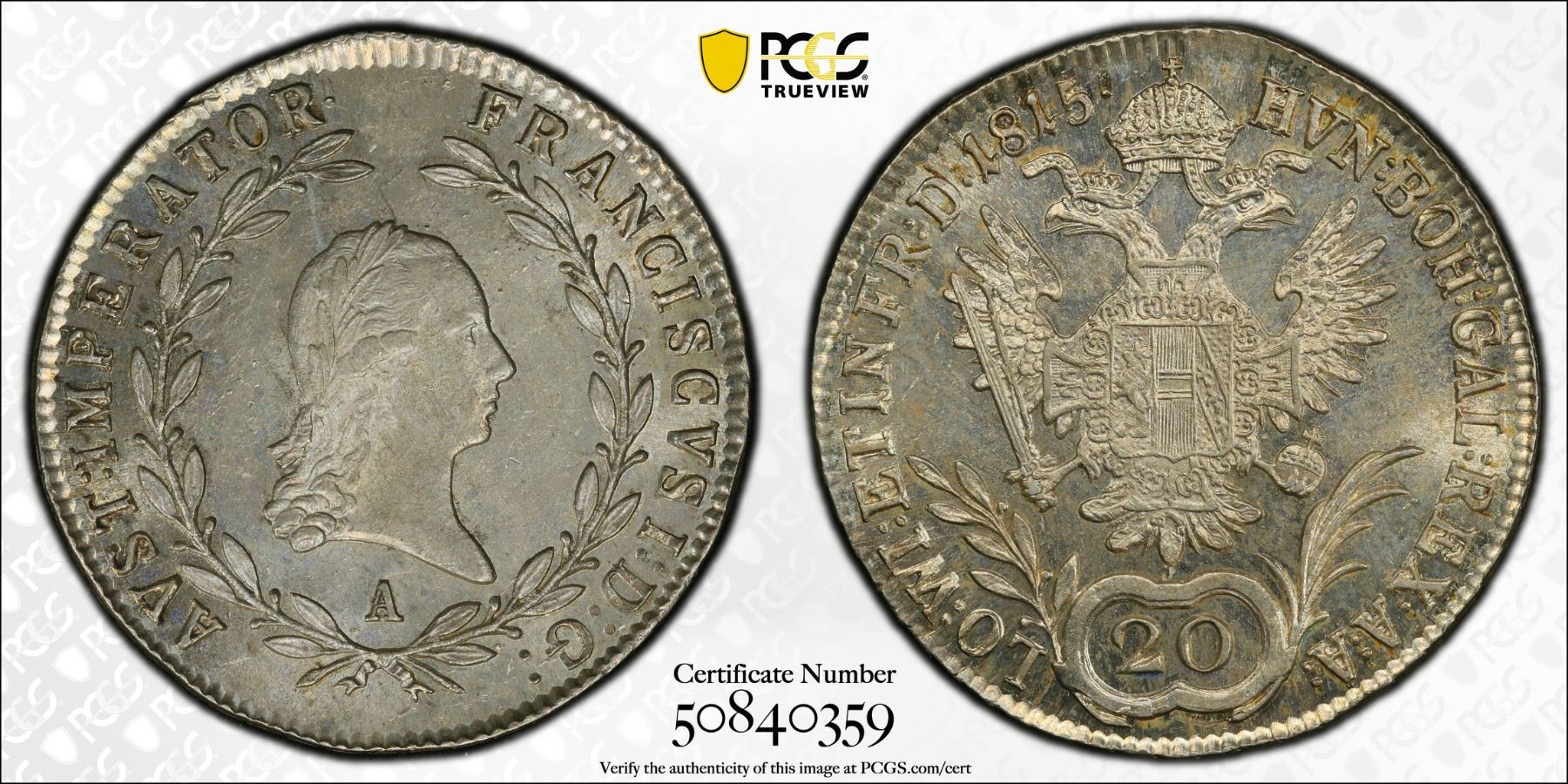 AUSTRIA: Franz I, 1804-1835, AR 20 kreuzer, 1815-A, PCGS graded MS63