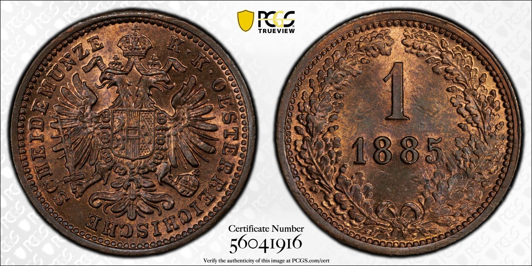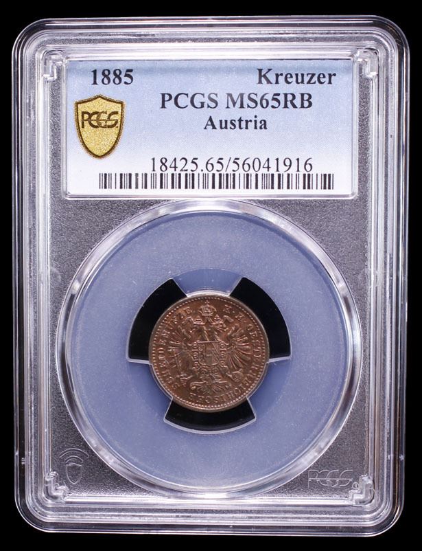 AUSTRIA: Franz Joseph I, 1848-1916, AE kreuzer, 1885, PCGS MS65 RB
