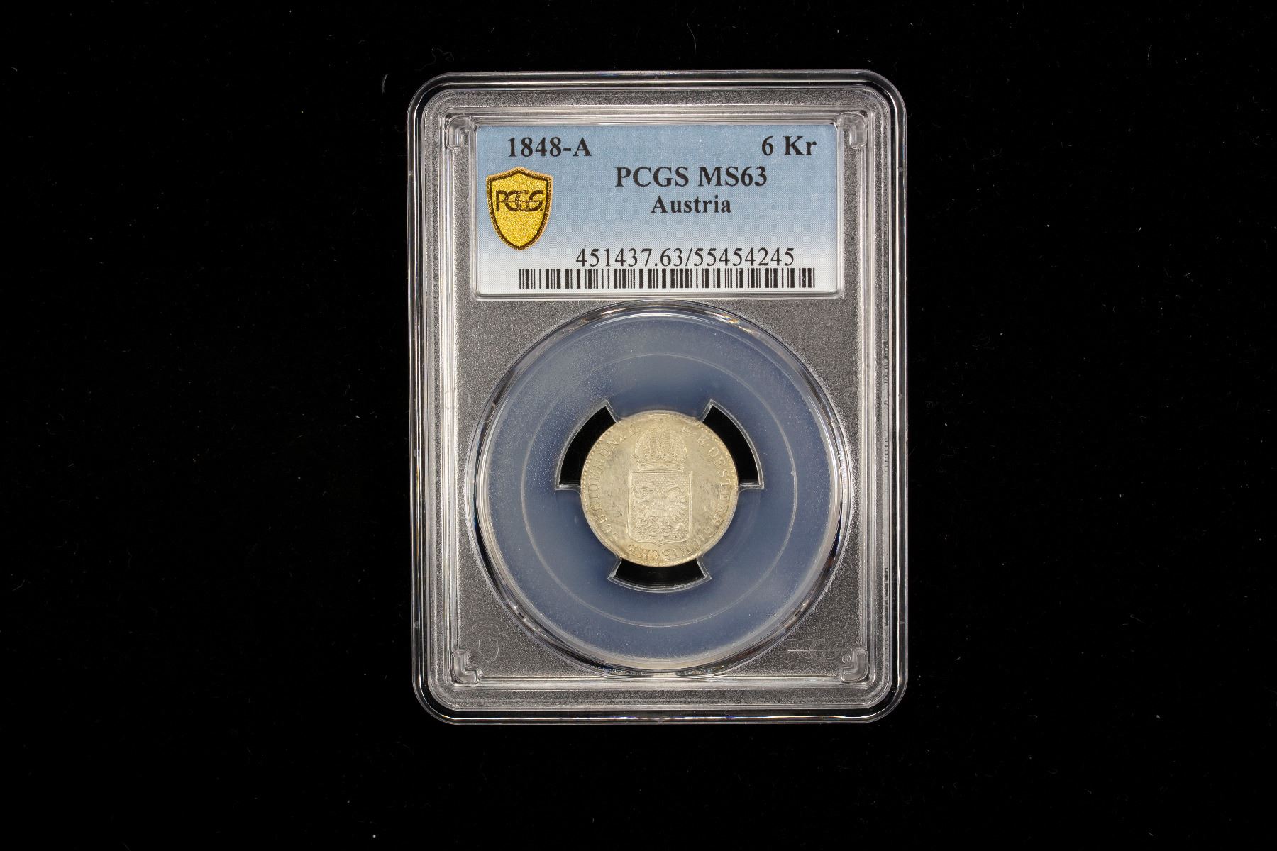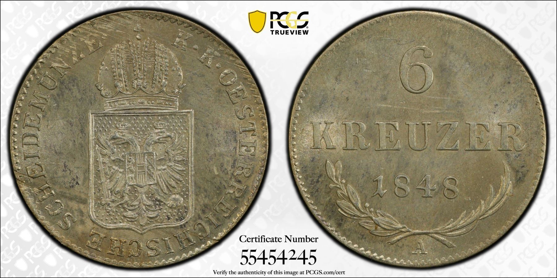 AUSTRIA: Franz Joseph I, 1848-1916, AR 6 kreuzer, Vienna, 1848-A, PCGS MS63