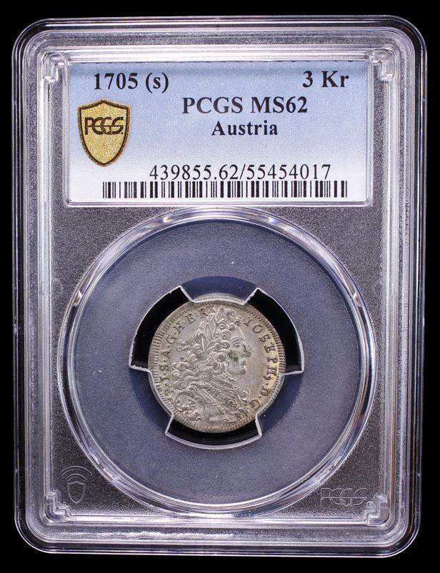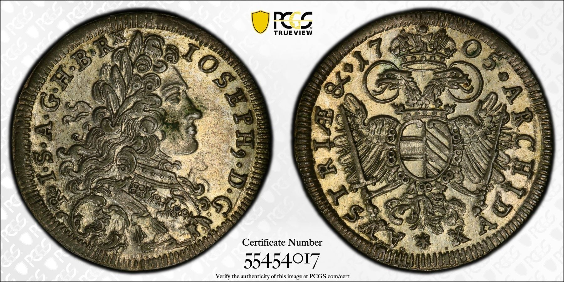AUSTRIA: Joseph I, 1705-1711, AR 3 kreuzer, München, 1705, PCGS MS62