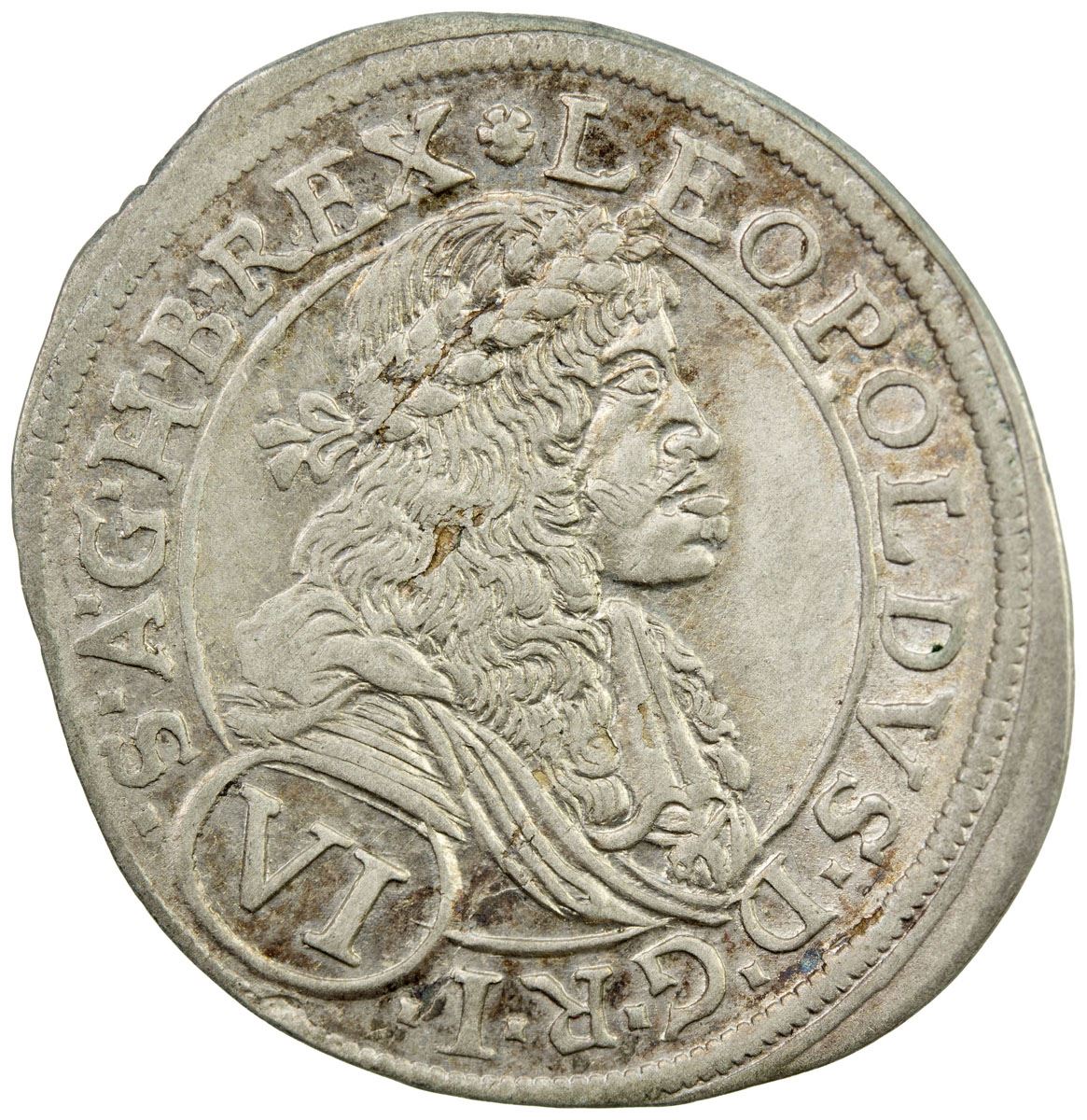AUSTRIA: Leopold I, 1657-1705, AR 6 kreuzer, 1674, KM-1185, Vienna Mint issue, struck with roller dies, irregular margins, flan somewhat oval-shaped, VF-EF.