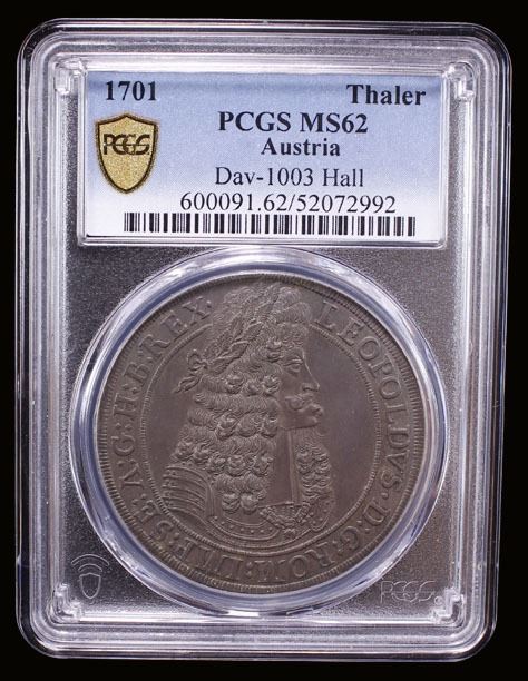 AUSTRIA: Leopold I, 1657-1705, AR thaler, Hall, 1701, PCGS MS62