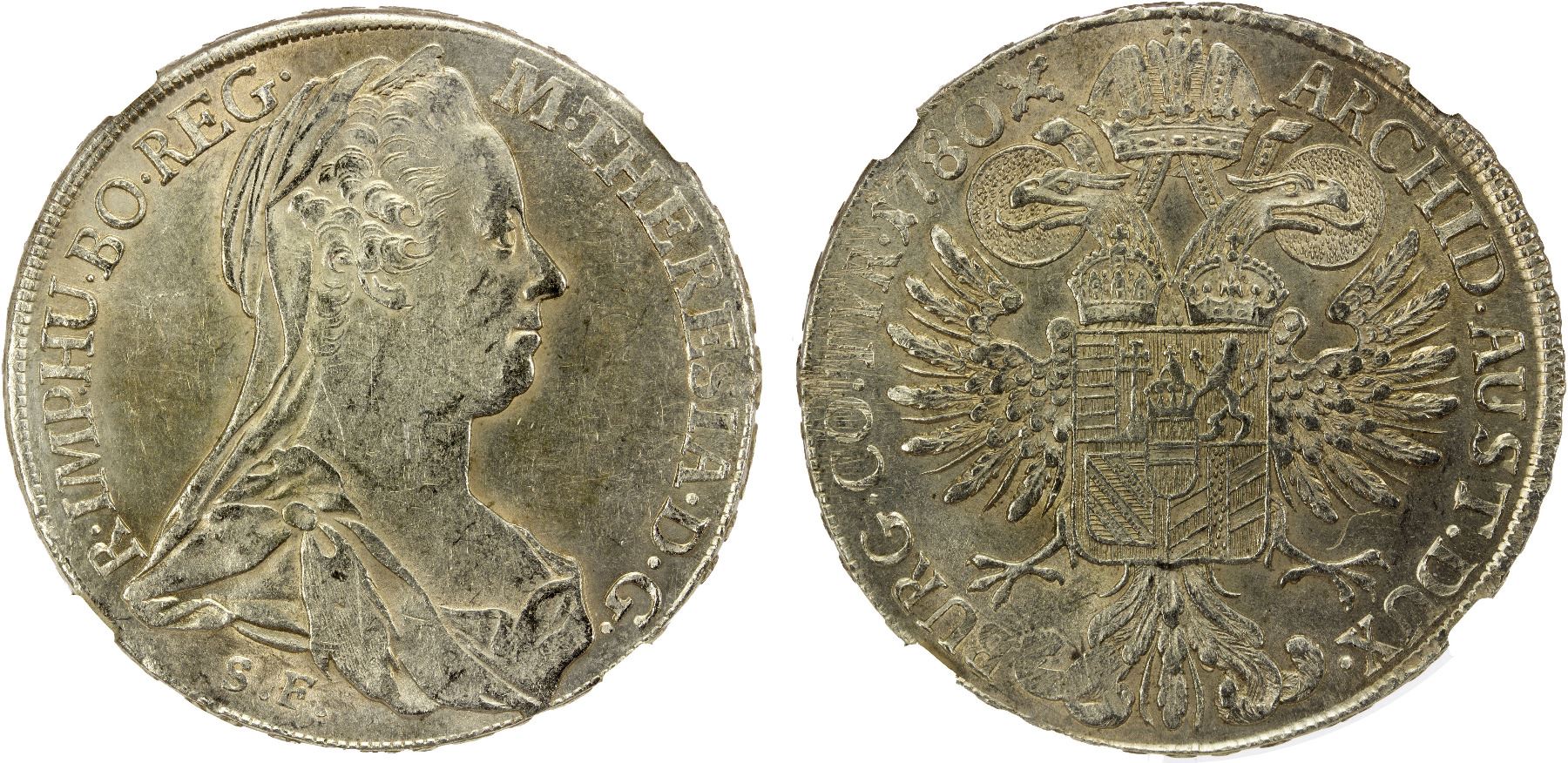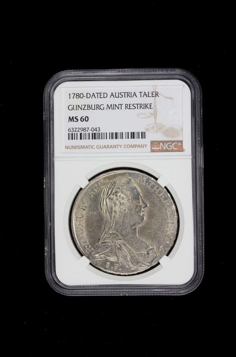 AUSTRIA: Maria Theresa, 1740-1780, AR thaler, Gunzburg, 1780 (1789-1792), Hafner-28a, initials SF, Gunzburg Mint restrike, lustrous with light tone, NGC graded MS60.