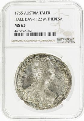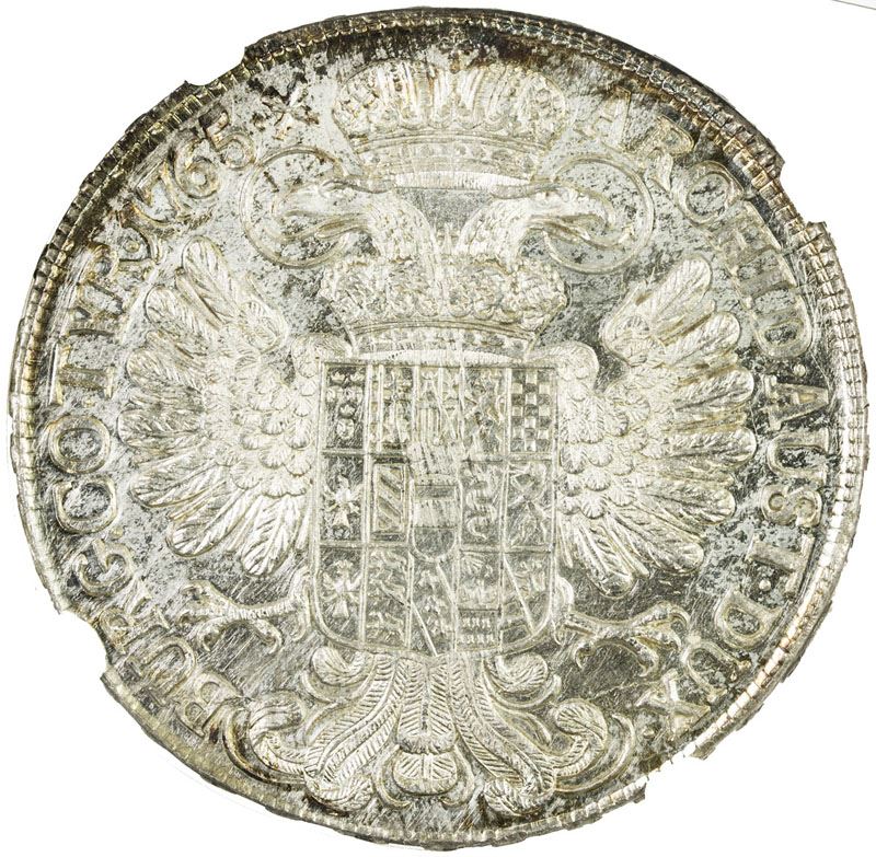 AUSTRIA: Maria Theresa, 1740-1780, AR thaler, Hall, 1765, KM-1799, Dav-1122, NGC graded MS63.