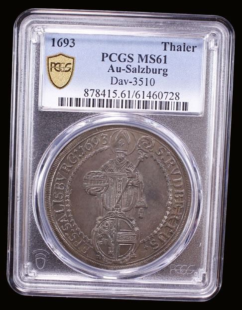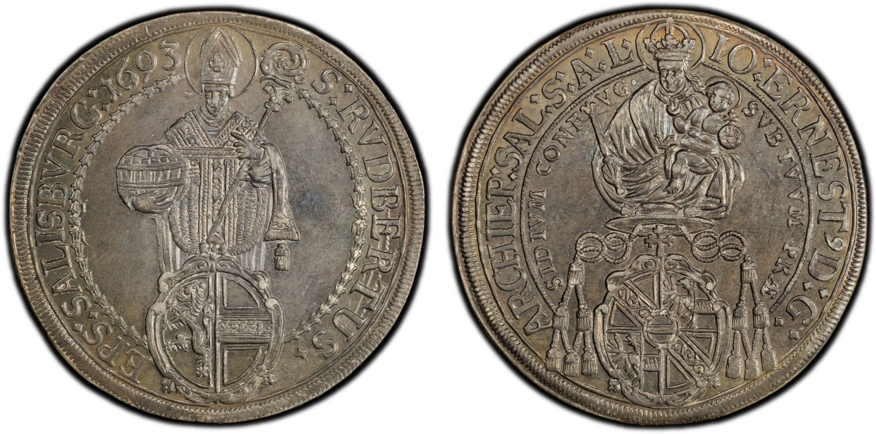 AUSTRIA: SALZBURG: Johann Ernst, 1687-1709, AR thaler, 1693, PCGS MS61