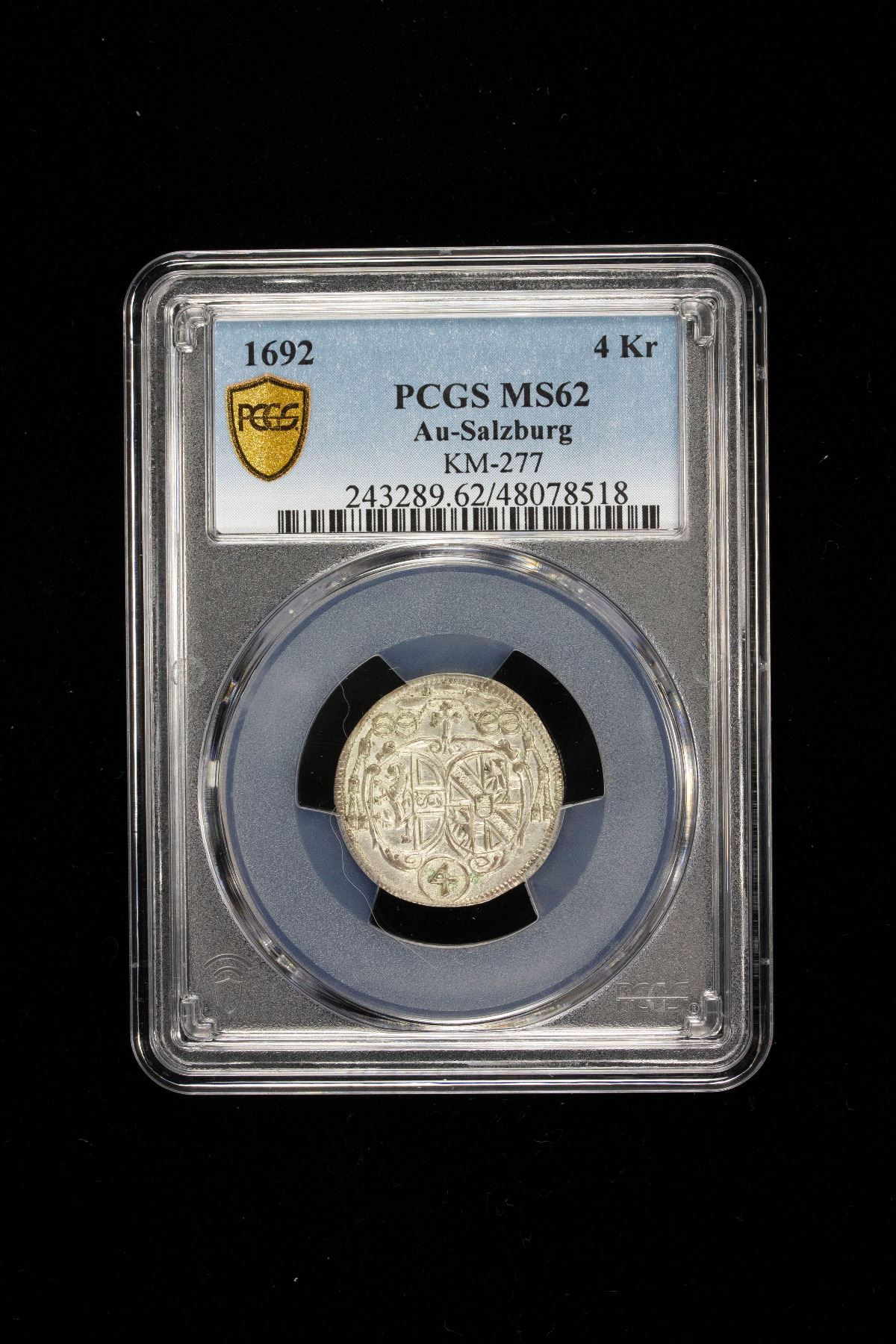 AUSTRIA: SALZBURG: Johann Ernst von Thun, 1687-1709, AR 4 kreuzer, 1692, PCGS MS62