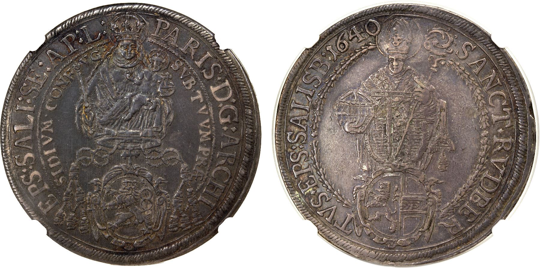 AUSTRIA: SALZBURG: Paris von Lodron, 1619-1653, AR thaler, 1640, NGC graded AU details