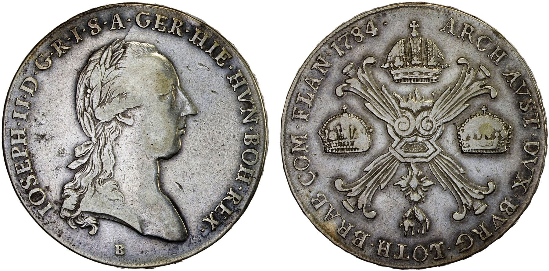 AUSTRIAN NETHERLANDS: Joseph II, 1780-1790, AR kronenthaler, Kremnica, 1784-B, F-VF