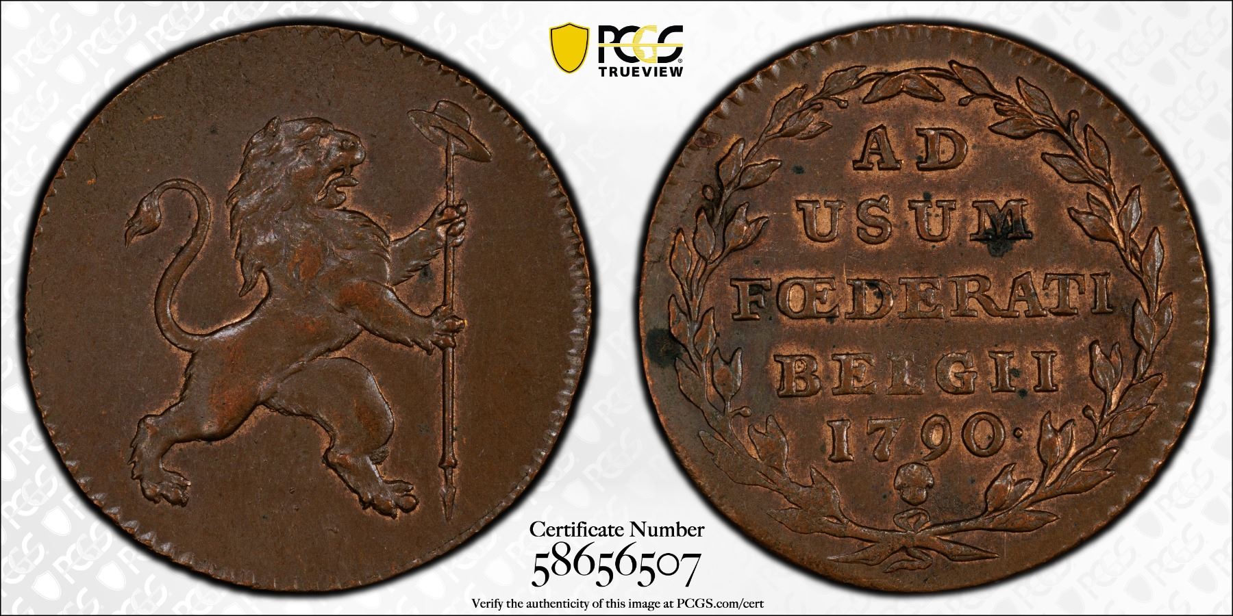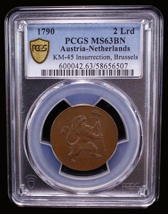 AUSTRIAN NETHERLANDS: United Belgian States, AE 2 liards / oorden, Brussels, 1790, KM-45, Insurrection Coinage, a lovely mint state example! PCGS graded MS63 BN. Minted during the first "independence" of Belgium that lasted 11 months, from January 11 till December 2, 1790.