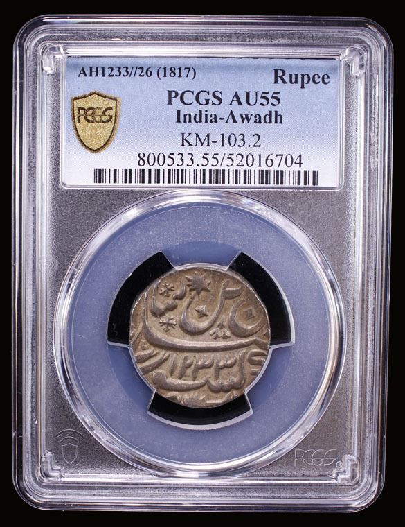 AWADH: AR rupee (11.24g), Muhammadabad Banaras, AH1223 year 26, PCGS AU55