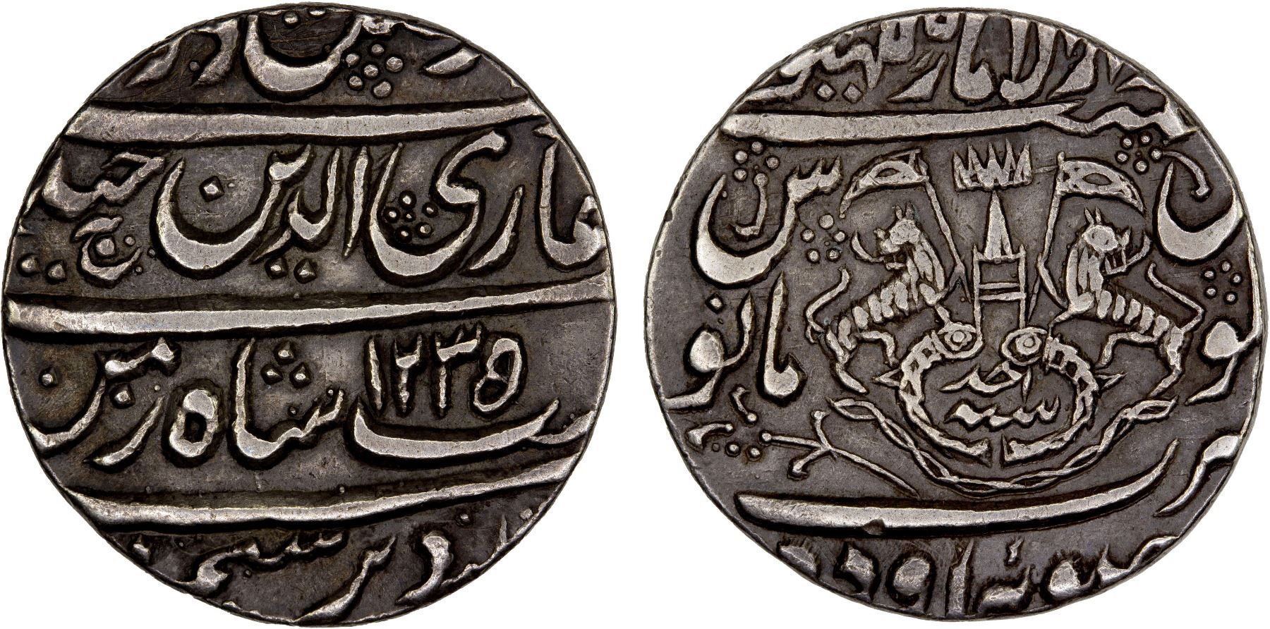 AWADH: Ghazi ud-Din Haidar, 1819-1827, AR rupee (11.08g), Lucknow, AH1235 year one (ahad), KM-165.1, lovely strike, choice VF-XF, ex Ian Todd Collection.