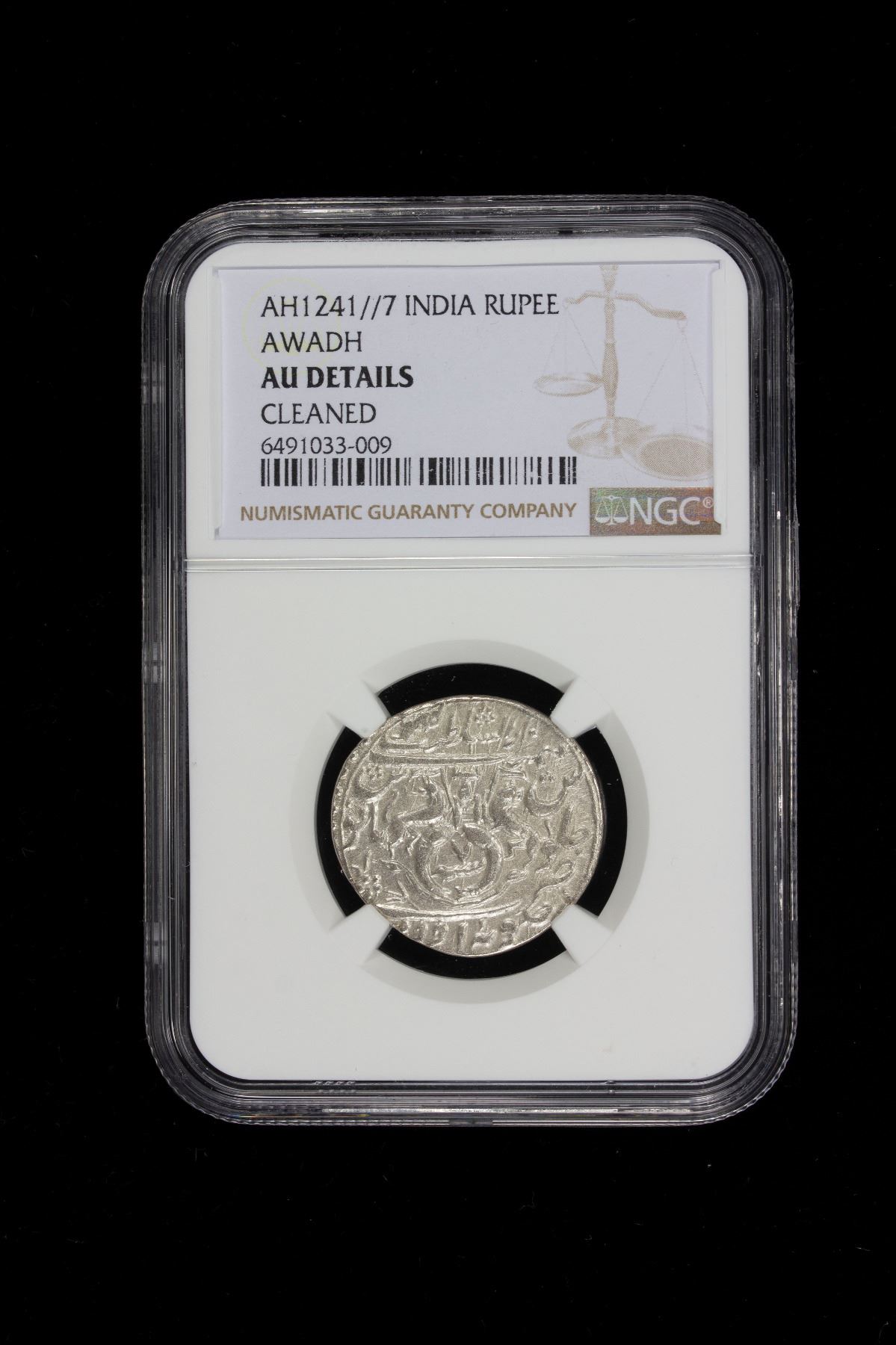 AWADH: Ghazi-ud-Din Haidar, 1819-1827, AR rupee, Lucknow, AH1241 year 7, KM-165.2, superb bold strike, especially on the reverse; cleaned (barely noticeable), AU details.