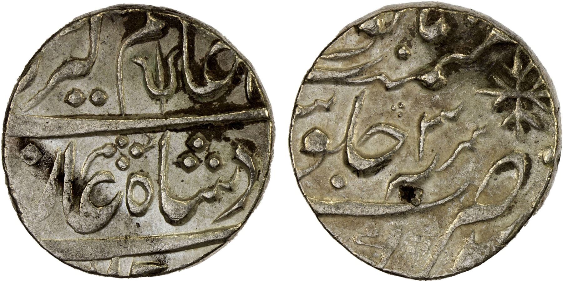 AWADH: Shuja' al-Dawla, 1754-1775, AR rupee (11.35g), Kora, year 3, Kapoor & Master-3.09, in the name of Alamgir II, with trident symbol in the top panel of the obverse; 1 small testmark, excellent VF-XF, R.