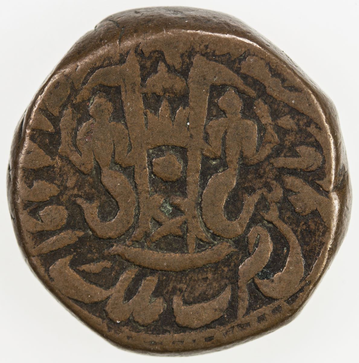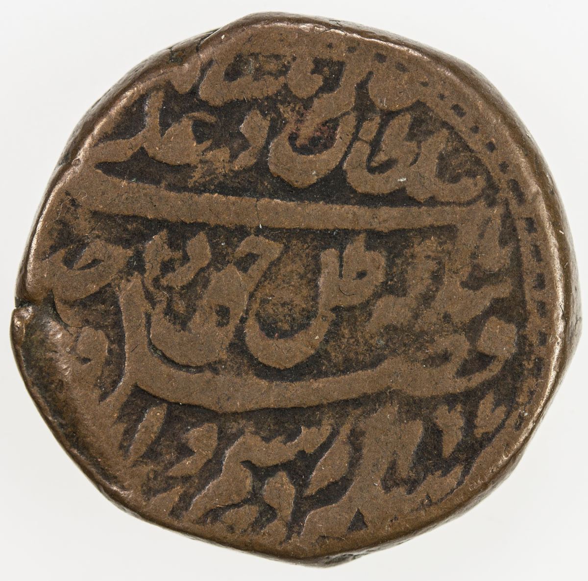 AWADH: Wajid Ali Shah, 1847-1856, AE falus (12.05g), Lucknow, AH1267 year 4, KM-351.1, very rare subtype, with mint name variety V, Fine, RR, KM Plate Specimen.
