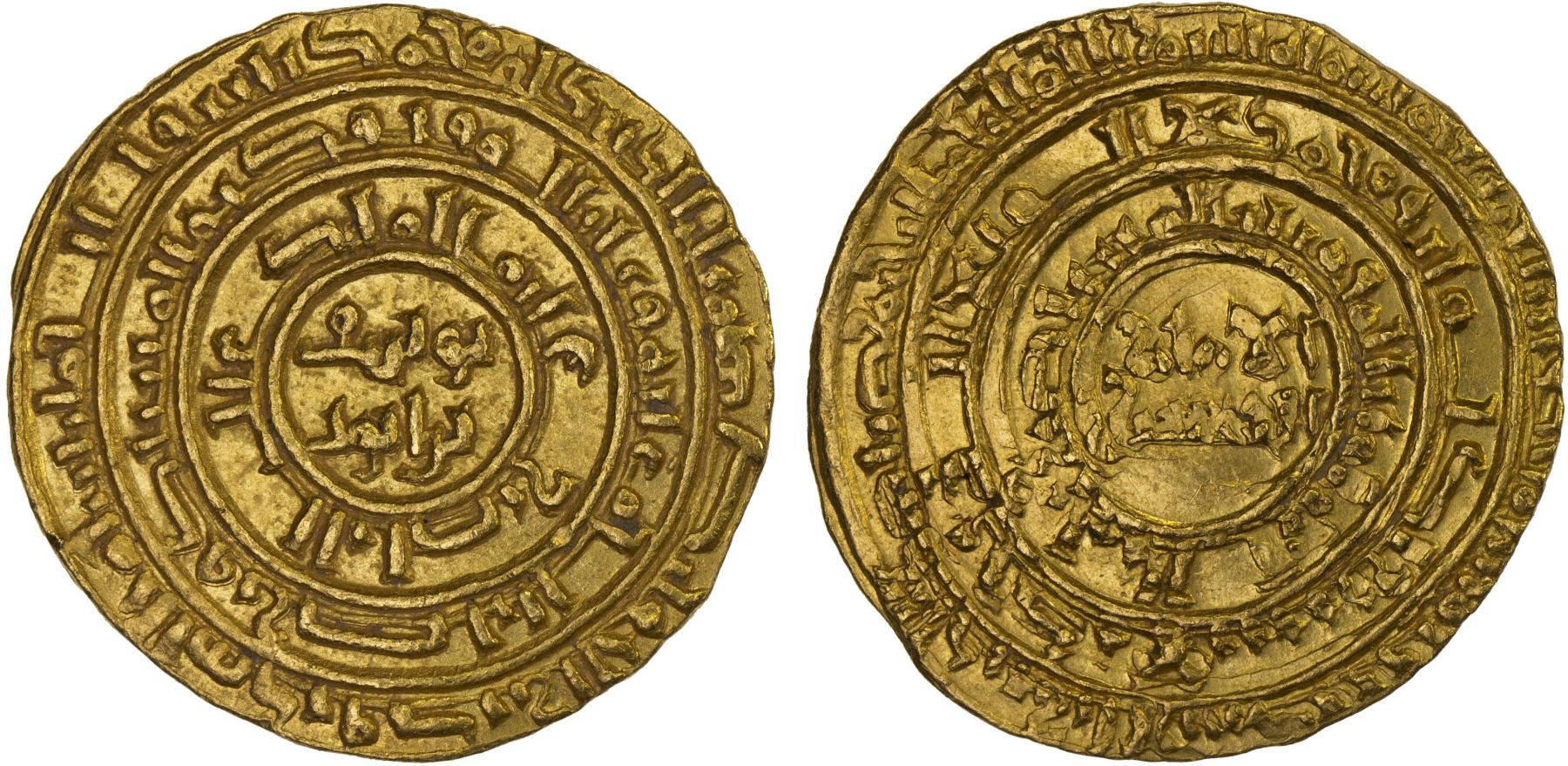 AYYUBID: al-Nasir Yusuf (Saladin), 1169-1193, AV dinar (4.07g), al-Iskandariya, AH571, A-785.1, citing the caliph al-Mustadi (AH566-575); reverse partially double-struck, choice XF, RR.