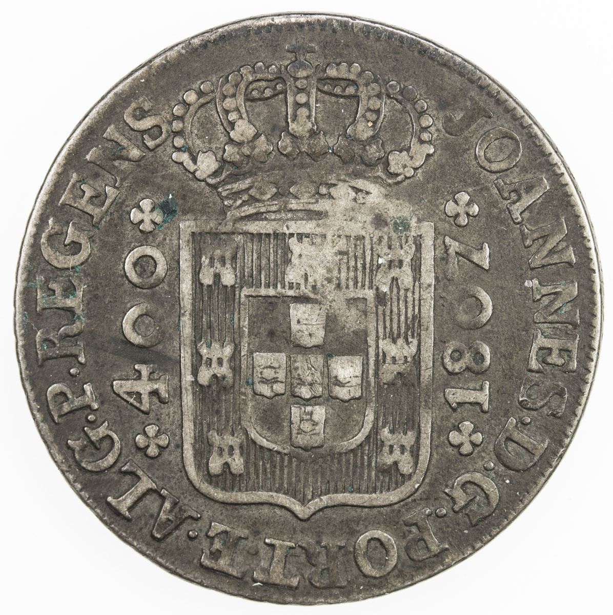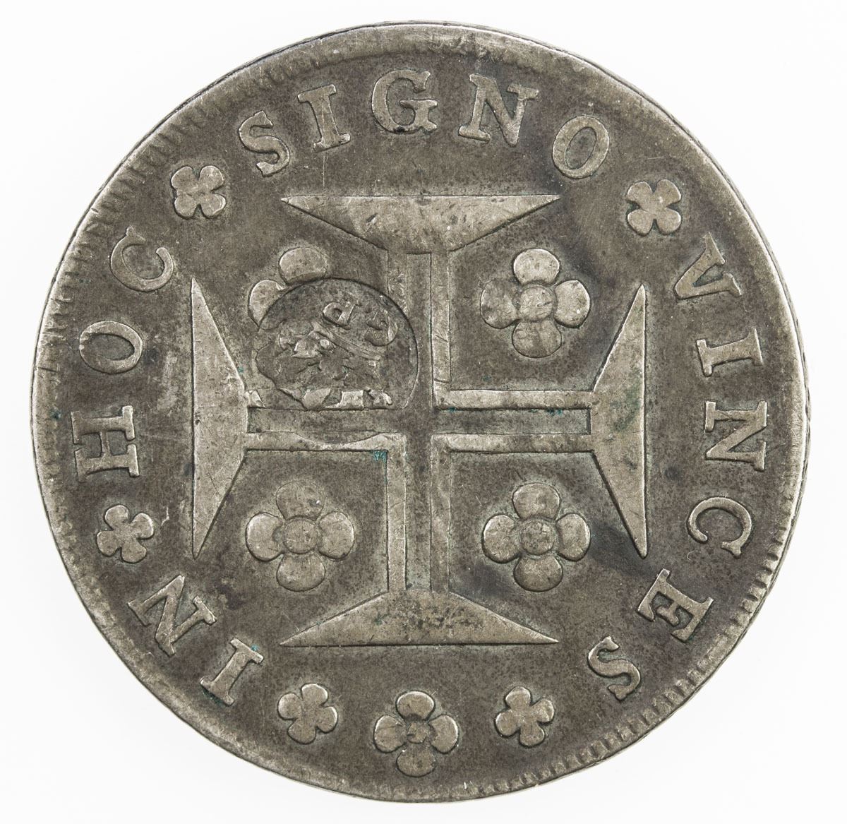 AZORES: AR 600 réis, ND [1887], KM-26.2, Gomes-L1 25.05, struck by the decree of 1887, countermarked crown above G.P. on Portugal 600 reis 1807, in name of the regent João, VF. Struck under the Decree of March 31, 1887. This second decree ordained that all foreign coinage in the Azores was to be countermarked with a crowned G.P. (Governo Português) within a circle. These also were eventually to be replaced or exchanged by current Portuguese coinage upon their entry into the public treasury. This countermark type has been heavily counterfeited and should be approached with caution.