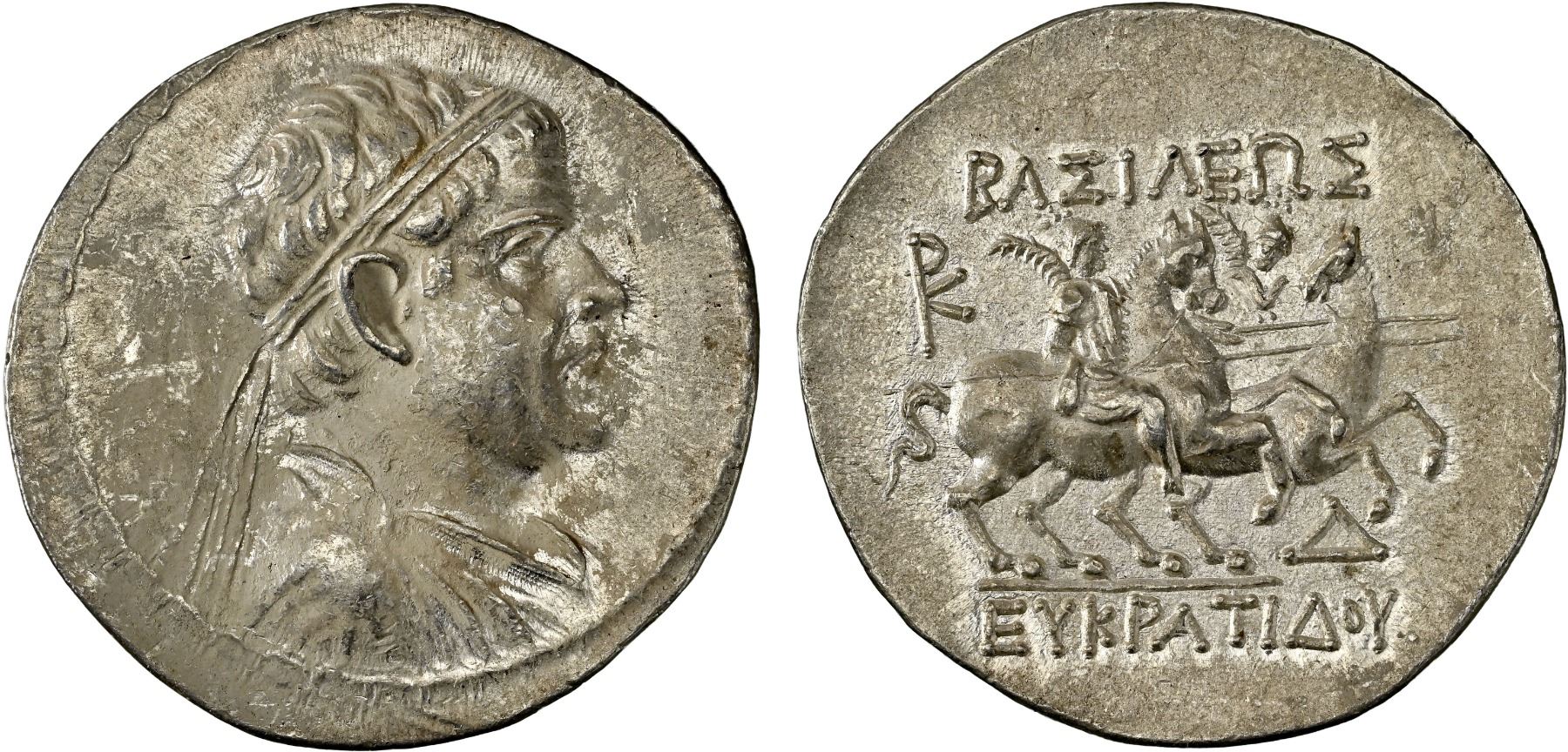 BACTRIA: Eukratides I Megas, ca. 170-145 BC, AR tetradrachm (16.96g), NGC AU