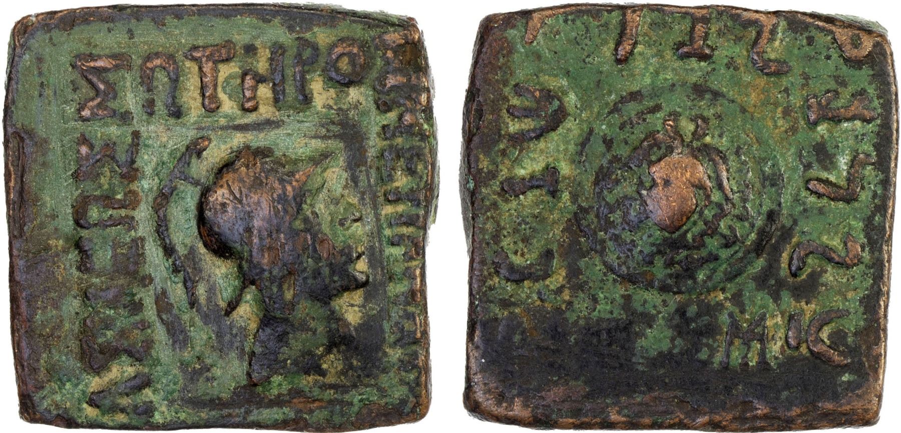 BACTRIA: Menander, c. 160-145 BC, AE square unit (9.31g), F-VF
