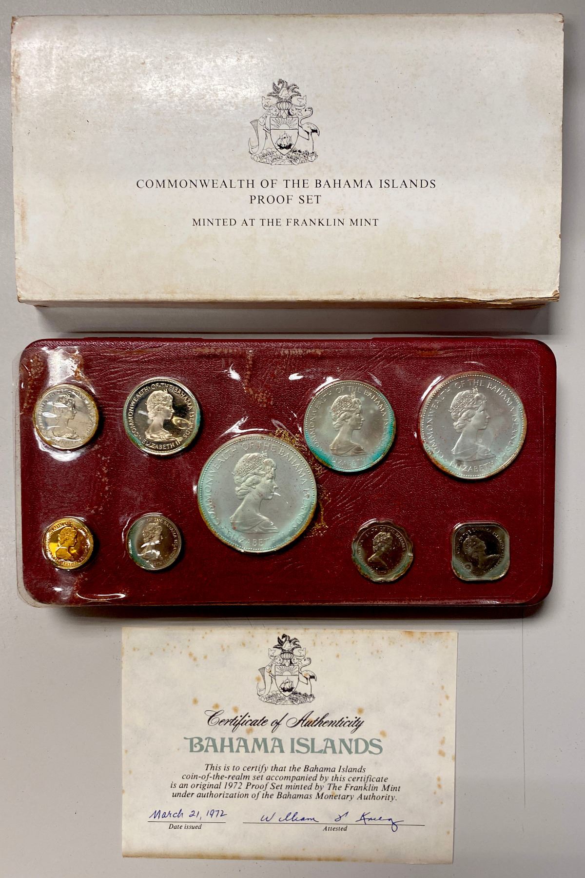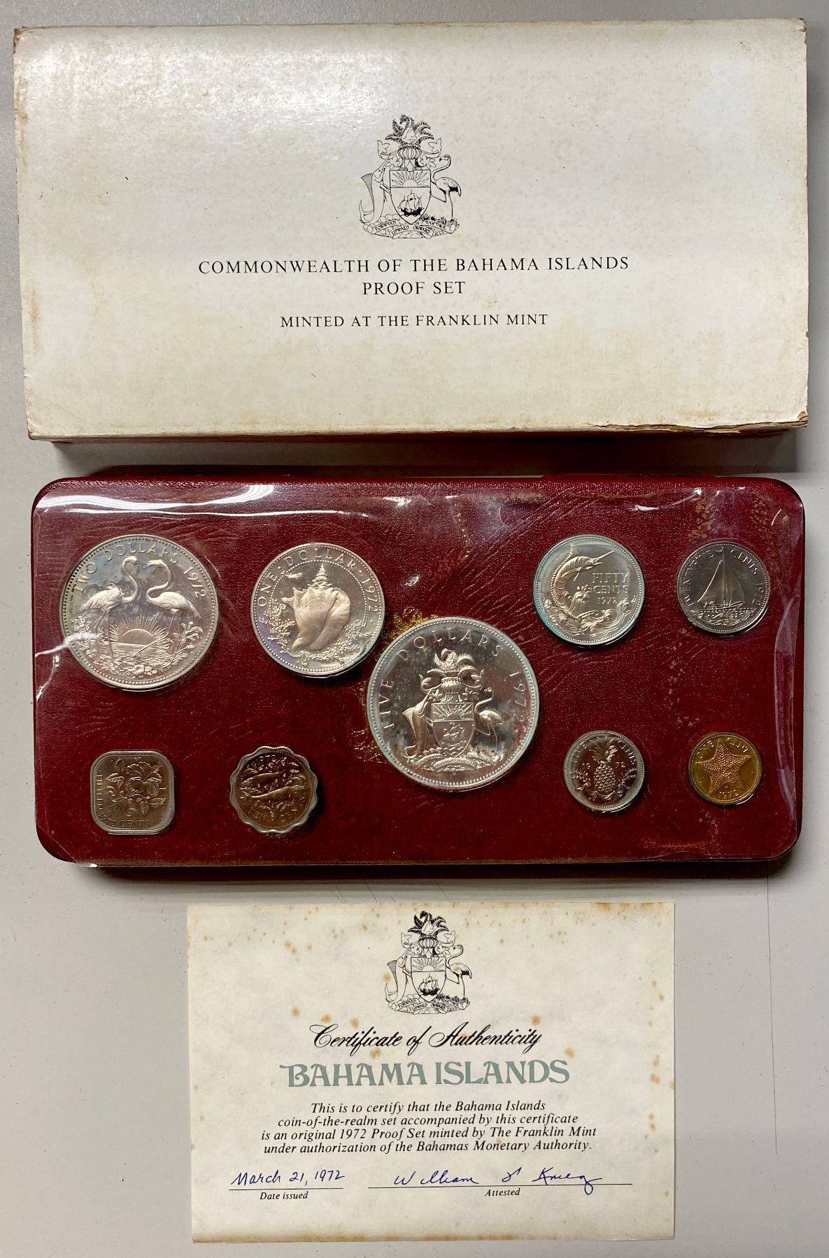 BAHAMAS: Elizabeth II, 1952-2022, 9-piece proof set, 1972, KM-PS6, some light PVC residue, in original packaging with COA, Proof.