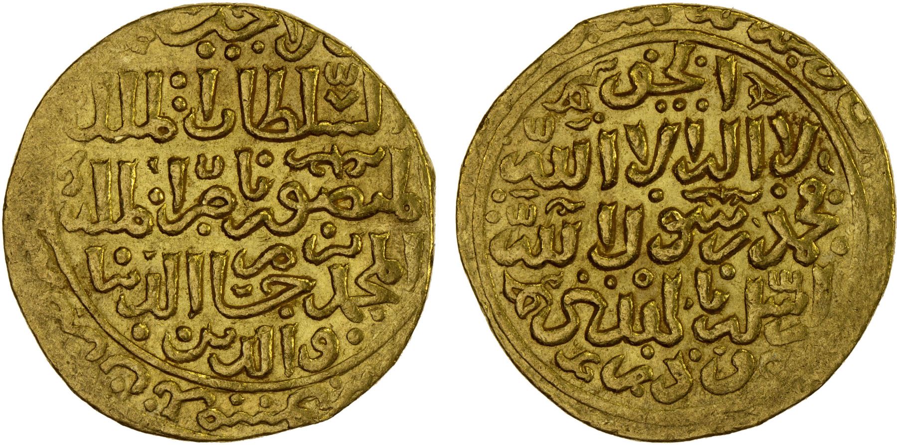 BAHRI MAMLUK: Lajin, 1296-1299, AV dinar (5.23g), Dimashq, DM, A-908, with the title nasir al-milla al-muhammadiya, AU, R.