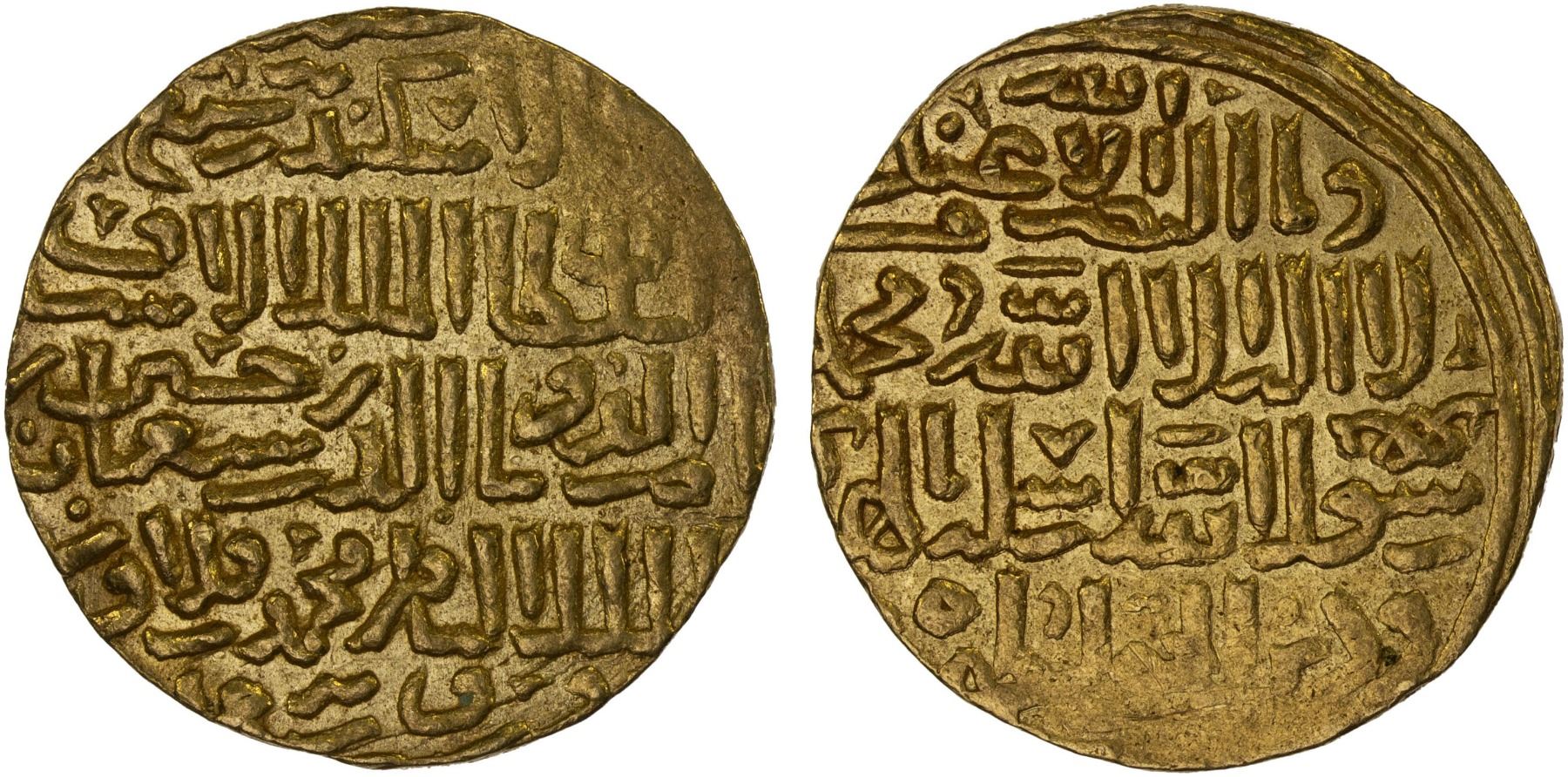 BAHRI MAMLUK: al-Ashraf Sha'ban II, 1363-1376, AV dinar (8.79g), al-Iskandariya, AH767, A-955, bold strike, with clear mint & date; lots of original luster, bold AU, R. For Sha'ban II, the mint of al-Iskandariya is about 10 times rarer than the principal al-Qahira.