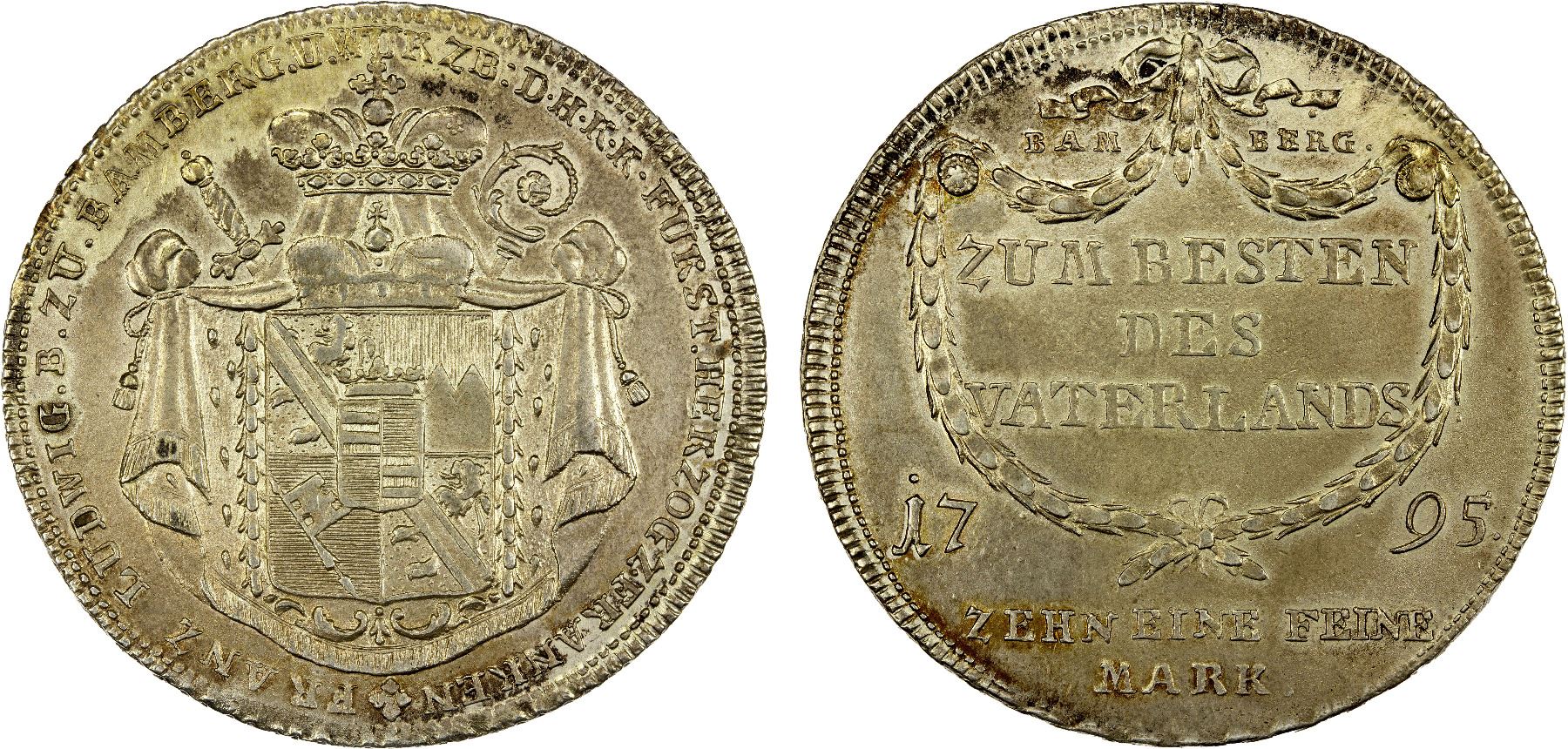 BAMBERG: Franz Ludwig von Erthal, 1779-1795, AR contribution thaler, Nürnberg, 1795, AU