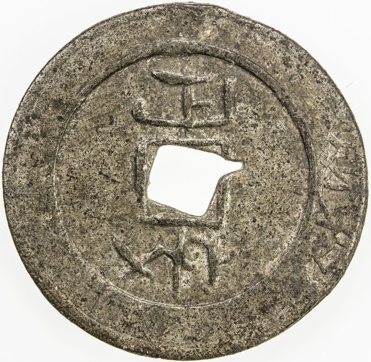 BANGKA ISLAND: tin cash (3.80g), Antan, ca. 18th century, Harsono-27, Zeno—, an dan (on tan in Hakka), with zhao cai (cau choi, "gather wealth") at 12h on obverse // dong yuan (tung yan, "eastern garden"), EF.