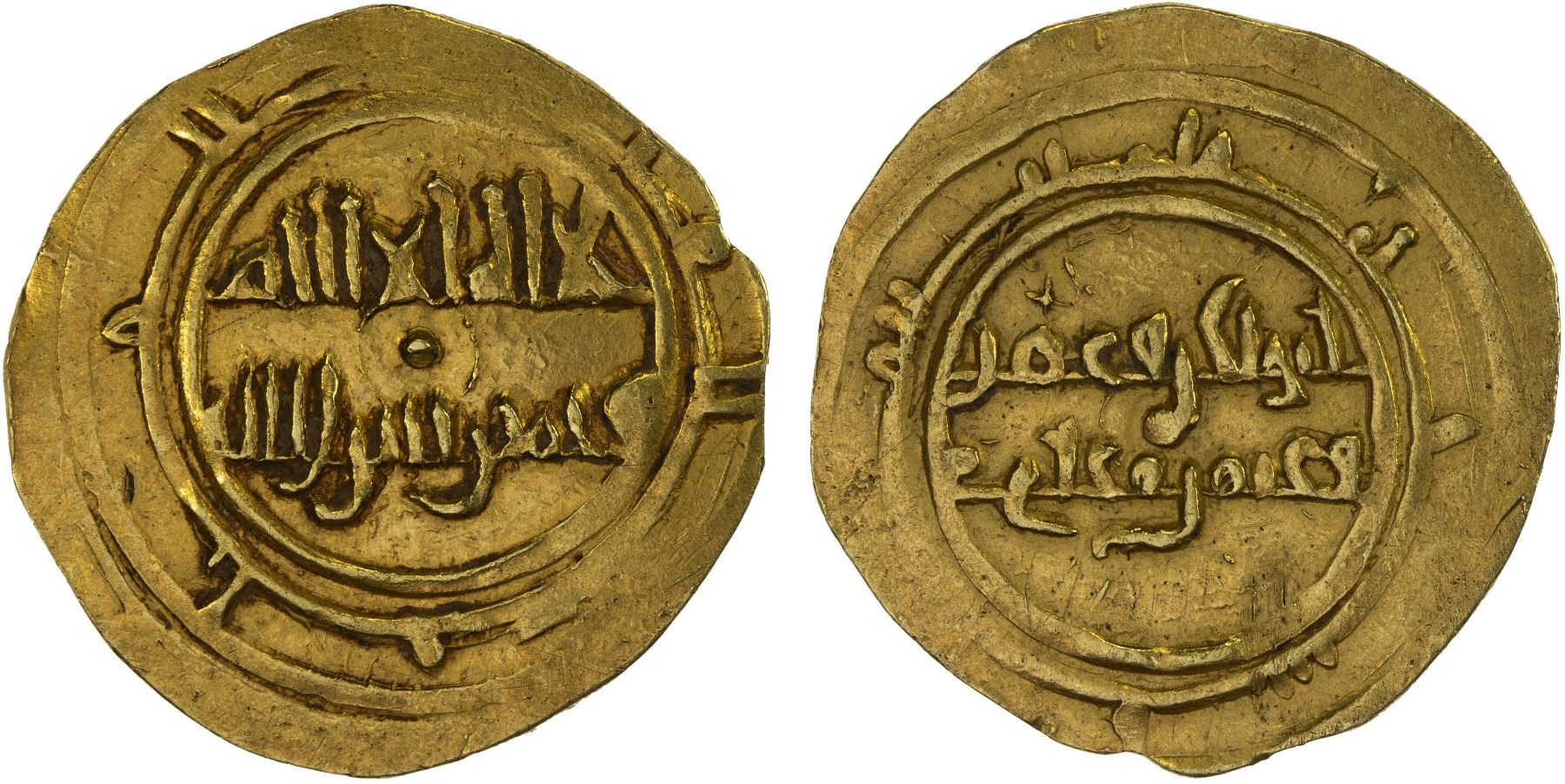 BANU HILAL: Anonymous, 11th century, AV dinar (3.93g), NM, A-A461, with the Sunni kalima on the obverse, the names of the 4 Sunni Rashidun on the reverse, XF, RR.