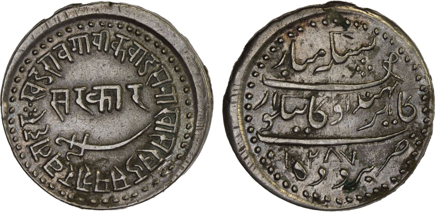 BARODA: Khande Rao, 1856-1870, AR nazarana rupee (11.41g), AH1287, XF