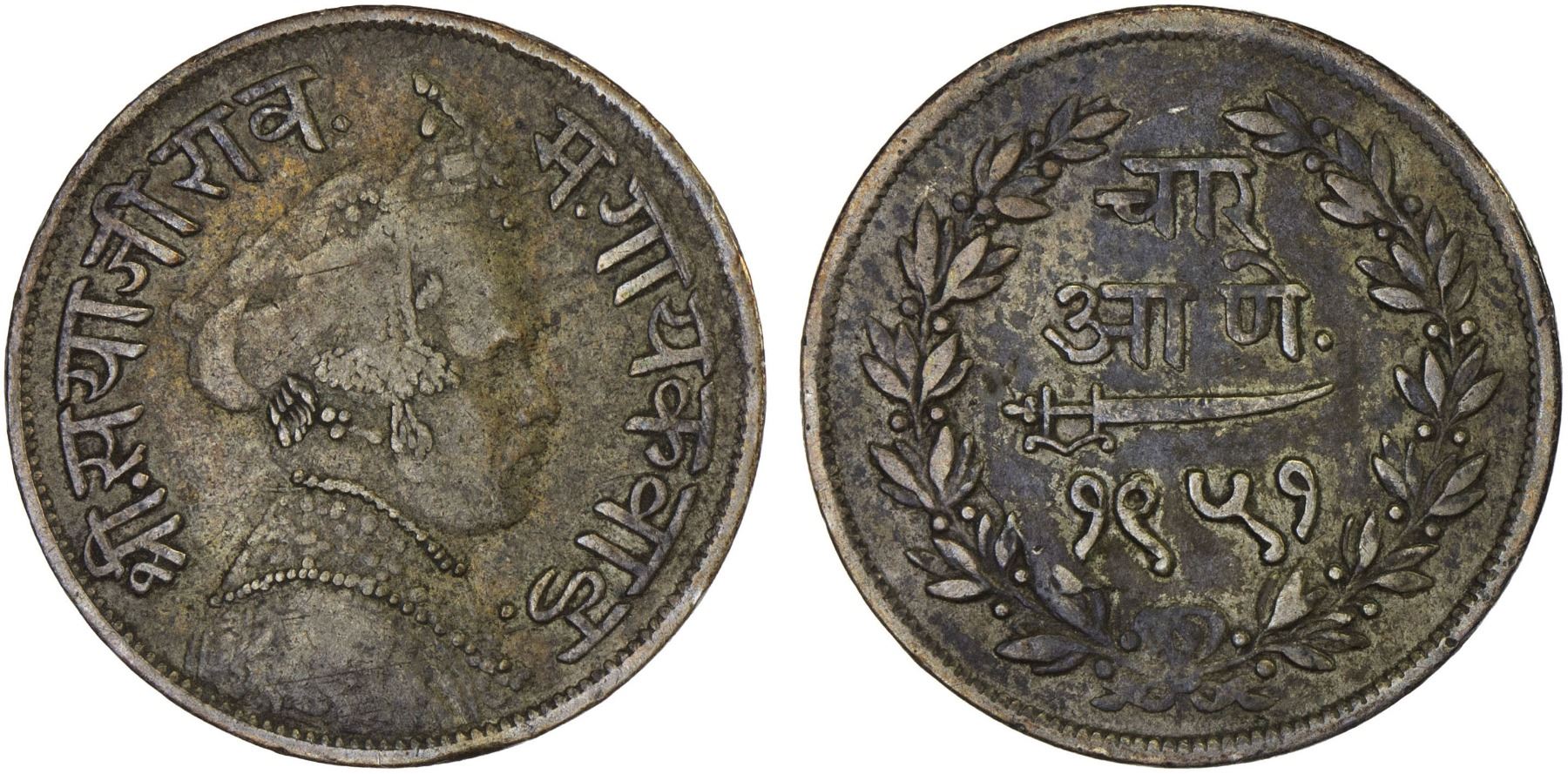 BARODA: Sayaji Rao III, 1875-1938, AR 4 annas, VS1951, VF